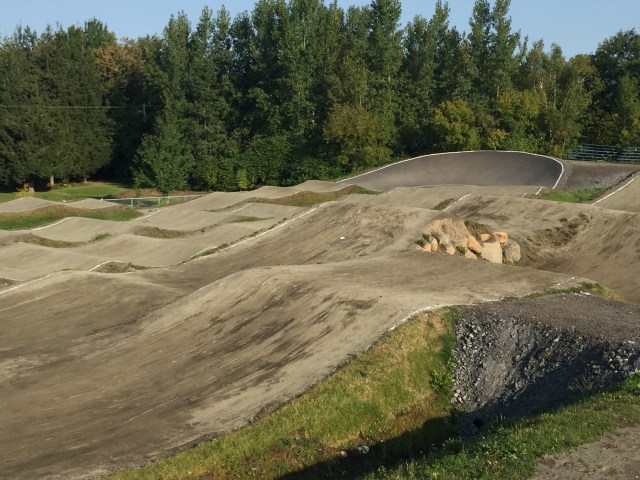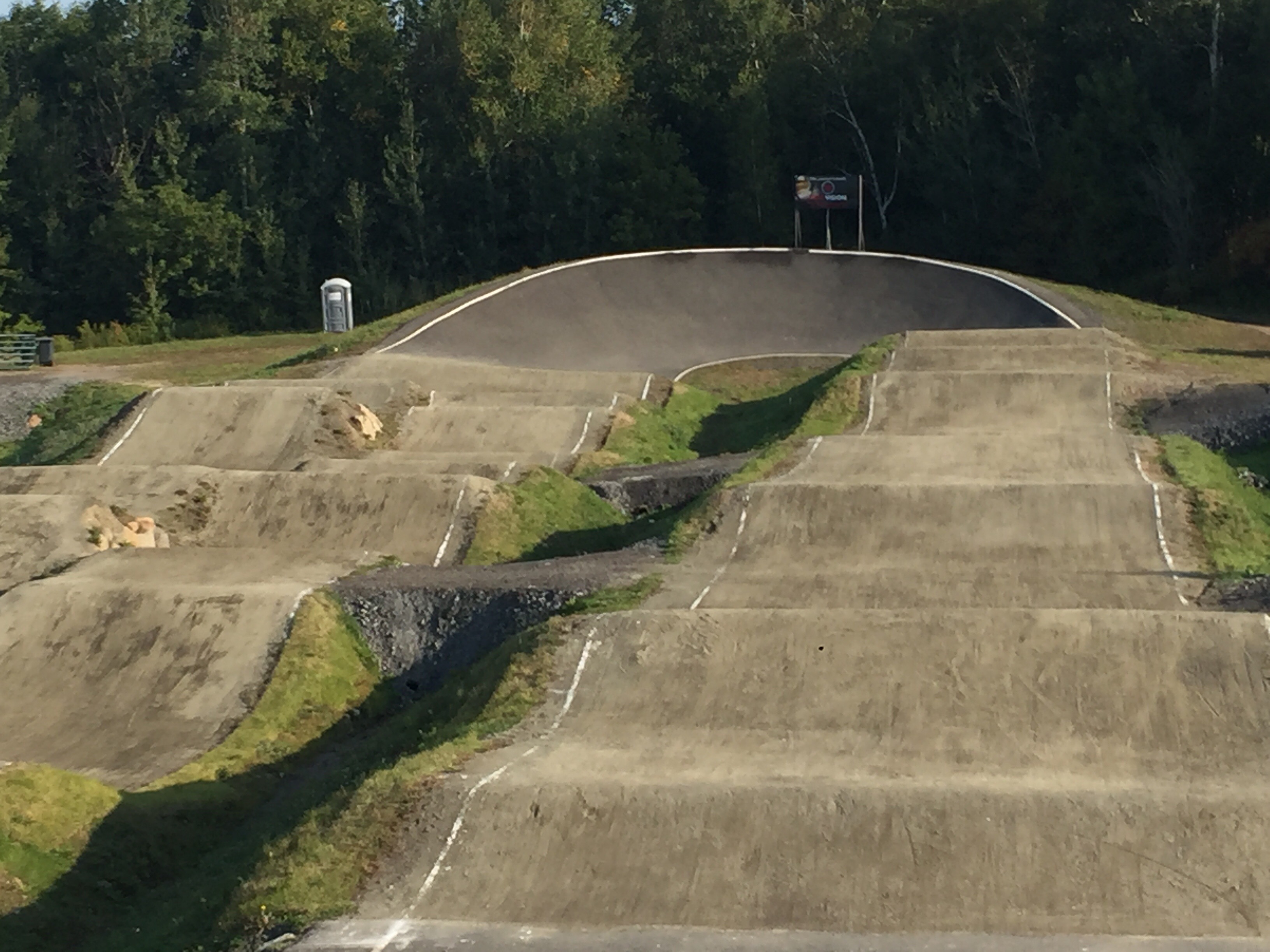 Hop! Un petit arrêt pour zieuter la piste de BMX de Drummondville. Classe continental 1, construire par Bmxexpert. Très impressionnant! Et quel travail de précision! Les berms sont gigantesques et les bosses découpées au couteau.