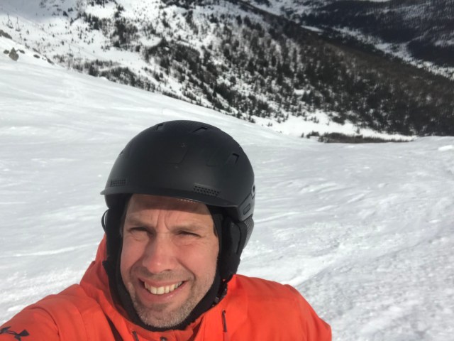 Toujours est‑il que la neige était bonne et il y en avait assez sous ma planche pour rider. Le soleil l’a ramollie et ça descendait bien. Enchaîner des virages devenait presque facile. Sur une pente à 30-35 degrés. Presque facile! Le mal aux côtes de la première journée a disparu lors de ma visite au Banff hot springs. Donc, y fait beau et ça descend dans les bosses. Et toujours, cette sensation que l’on est petit devant l’immensité. La montagne a sur moi cette aura et cet effet. À monter les quelques derniers mètres pour atteindre une corniche, pour voir ce qu’il y a de l’autre bord, une sorte de sensation m’irradie. Le coeur me débat et je réalise où je suis sur une corniche, en haut d’une grosse montagne, le vent dans la face, l’excitation à son comble et le vide à un jet de pierre. Pourtant, vu de la chaise, ça semblait si simple et facile! Et là, je réalise que là où je veux descendre est plus à pic que je ne le croyais. En tout cas, j’ai eu la chienne. Pas jusqu’à aller à me mettre en danger, mais juste pour prendre conscience de la pente que je suis sur le point de descendre! C’est impressionnant et je ne veux pas bêcher! Il y a du monde qui va me voir dans les chaises!